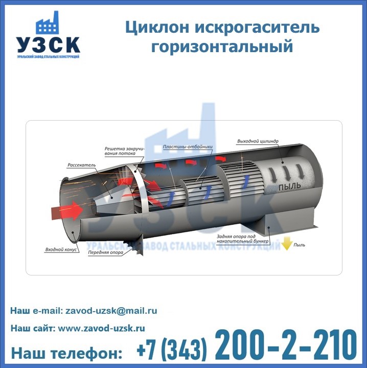Горизонтальные циклоны-искрогасители ЦГ поставляются в Каскелене в сборке или же транспортными единицами для последующей сборки, если предназначены для работы с большими объемами.