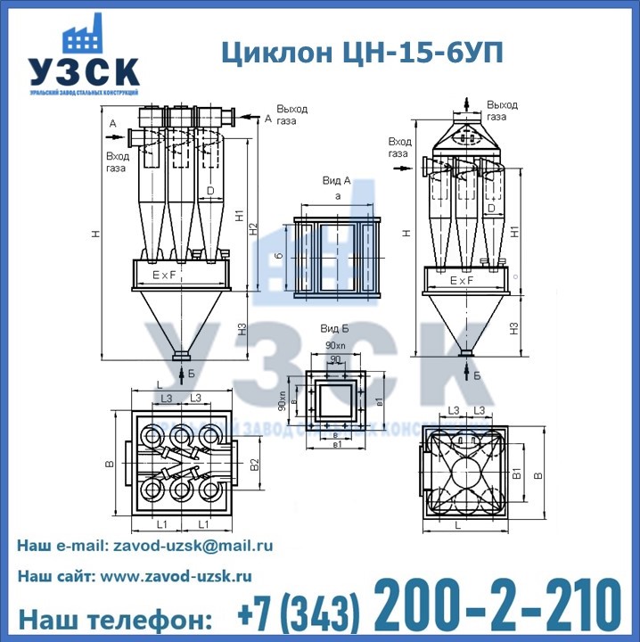 | ЦИКЛОН ЦН-15-800х6УП | 2400 | 2500 | 1450 | 538 | 1420 | 880 | 300 | 440 | 4510 |