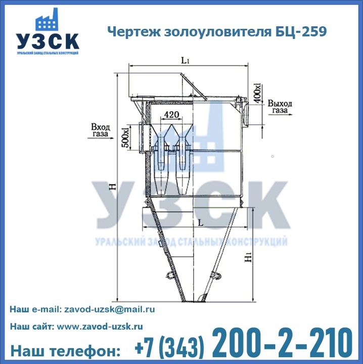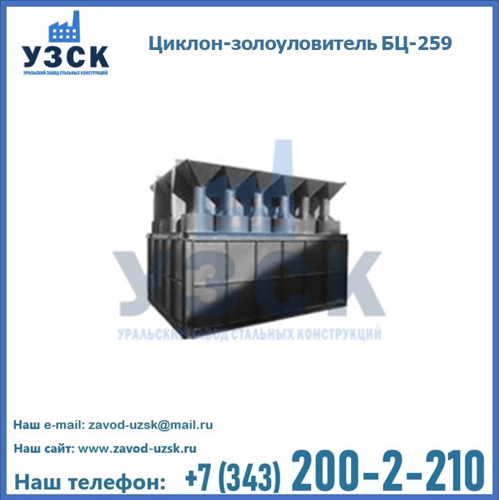 Если вы планируете купить то или иное оборудование, например, циклоны-золоуловители БЦ-259, то рекомендуем заказать данный товар на сайте УЗСК. Мы производим и реализуем продукцию высокого качества по приемлемой цене. Эксперты Уральского Завода Стальных Конструкций в Каскелене проконсультируют вас по всем вопросам, помогут сделать выбор и оформить заказ без лишних временных затрат. Мы гарантируем соответствие нашей продукции всем требованиям ГОСТ и ТУ, а также износостойкость и высокую производительность предлагаемого оборудования. Если требуется изготовить циклон нестандартных размеров, то такой вариант выполнения заказа тоже предусмотрен, так как предприятие имеет собственные производственные площади и надежных поставщиков. На все поставляемое или производимое оборудование имеются чертежи и прочая техническая документация. Заказать и купить циклоны или прочее оборудование высокого качества и по доступной цене можно через наш сайт или по указанному в разделе «Контакты» телефону.