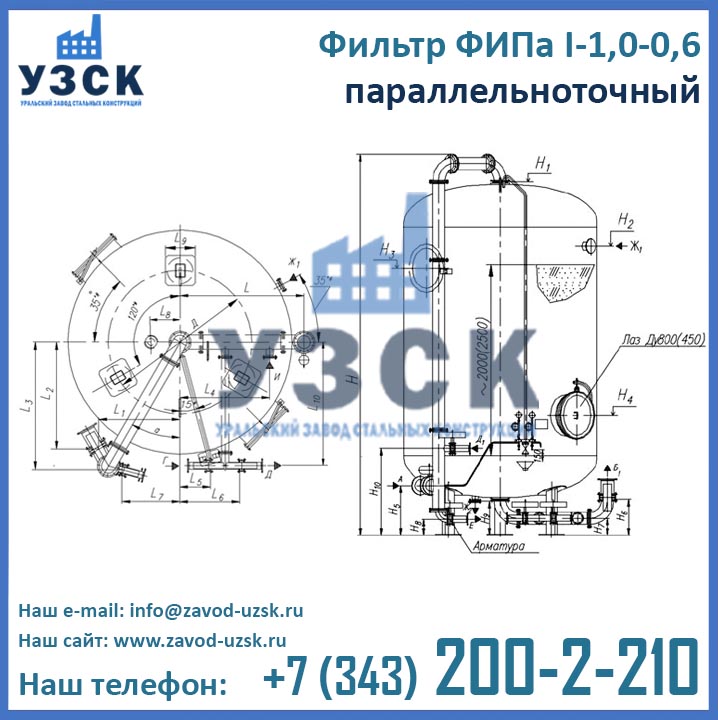 Для того, чтобы купить фильтр ФИПа1 1,0-0,6 в Каскелене выгодно, необходимо обратиться непосредственно к производителю данного оборудования. Ведущий производитель фильтров для смягчения воды – Уральский Завод Стальных Конструкций – предлагает фильтры натрий-катионитные параллельноточные по низким ценам. Оформить заказ на изготовление фильтра ФИПаI 1,0-0,6 Вы можете по электронной почте, указанной в разделе «Контакты» или при помощи формы заказа, расположенной ниже.