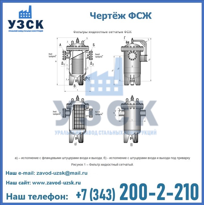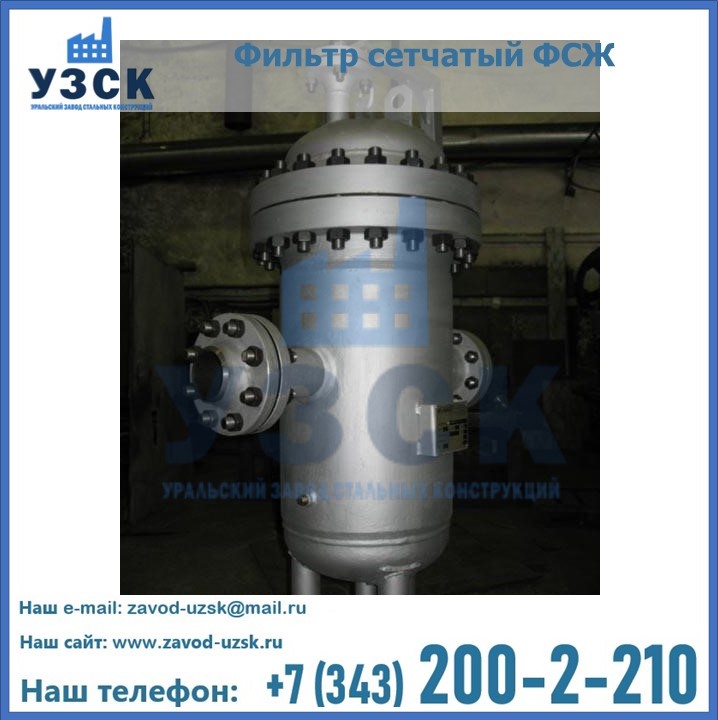 Очистку перекачиваемых жидкостей на предприятиях нефтяной, пищевой, горнорудной, фармацевтической и других отраслей промышленности эффективно выполнять с помощью жидкостного сетчатого фильтра — емкостное оборудование цилиндрической формы со съемной крышкой и элементом фильтрации внутри. Оснащенные им всасывающие линии насосных станций и установок защищены от проникновения твердых частиц в функциональные узлы гидравлической системы. Оборудование служит для перекачивания токсичных, агрессивных и иных эмульсий, суспензий, жидкостей. Купить фильтр сетчатый жидкостный ФСЖ в Каскелене с гарантией производителя предлагает «Уральский завод стальных конструкций». Мы выполняем проектирование и изготовление ФСЖ по индивидуальным требованиям (климатическая зона, транспортируемая жидкость).