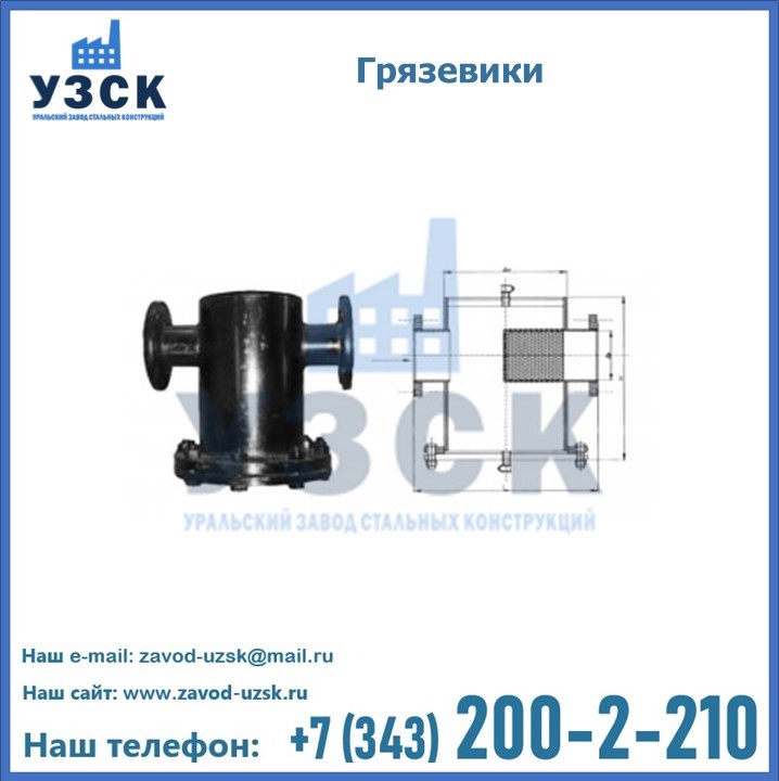 Уральский Завод Стальных Конструкций занимается производством и реализацией грязевиков в городе Каскелен, в наличии устройства горизонтального и вертикального типа, соответствующие всем требованиям и стандартам, в том числе условиям «Правил устройства и безопасной эксплуатации».