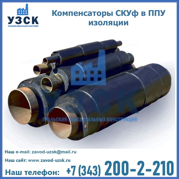 Если трубы для прокладки усилены теплоизоляцией ППУ, то на них допустимо устанавливать только cильфонный компенсатор СКУф в ППУ с такими же размерами теплоизоляционного слоя. На данный момент, такие устройства считаются одними из наиболее надежных, эффективных и долговечных элементов, способных обеспечить бесперебойную работу трубопроводов. На заводе «УЗСК» вы можете купить СКУф ППУ и другие компенсаторы по приемлемой цене, от надежных производителей. УЗСК осуществляет поставки сильфонных компенсаторов СКУ в ППУ любых типоразмеров. Наше предприятие поставляет и производит оборудование, имеющее длительную гарантию и большой эксплуатационный ресурс. Если требуется изготовить нестандартное изделие, то такой вариант выполнения заказа тоже предусмотрен, так как предприятие имеет собственные производственные площади и надежных поставщиков. На все оборудование имеются чертежи и прочая техническая документация. Чтобы заказать сильфонный узел СКУф в ППУ изоляции в Каскелене необходимо направить запрос через форму онлайн-заказа на сайте или связаться с нашими специалистами по телефонам, указанным в разделе «КОНТАКТЫ .